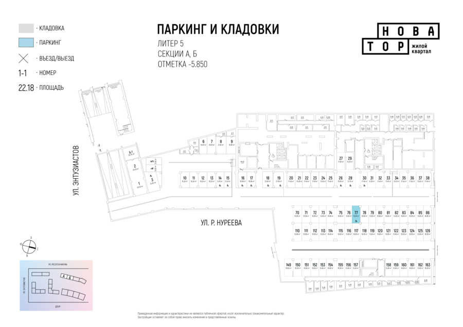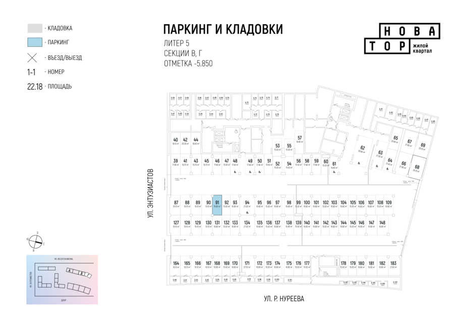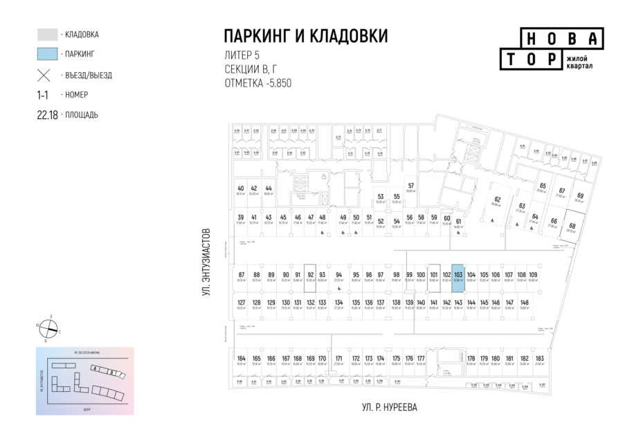 ЖК Новатор, Литер 5. Паркинг, Секция А,Б,В,Г