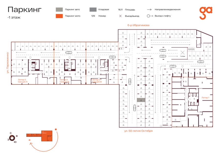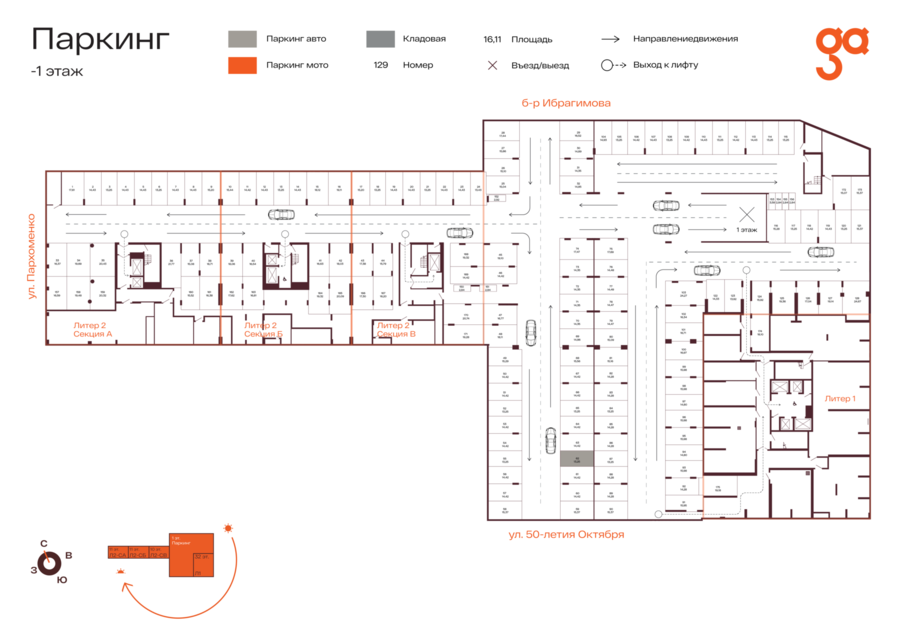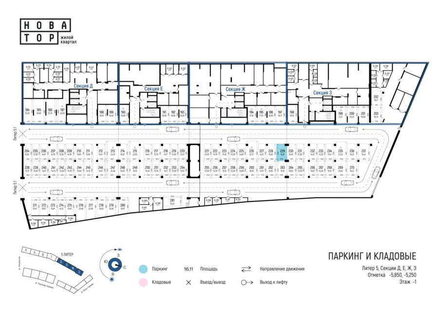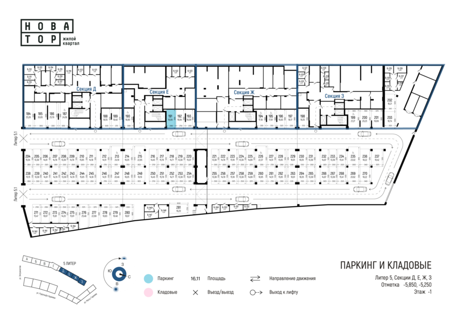 Литер 4.1 и 4.2 Паркинг, Секция А,Б,В,Г,Д,Е,Ж,З