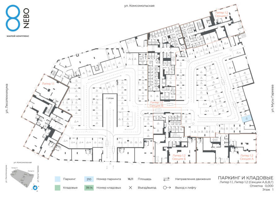 ЖК Новатор, Литер 5. Паркинг, Секция А,Б,В,Г