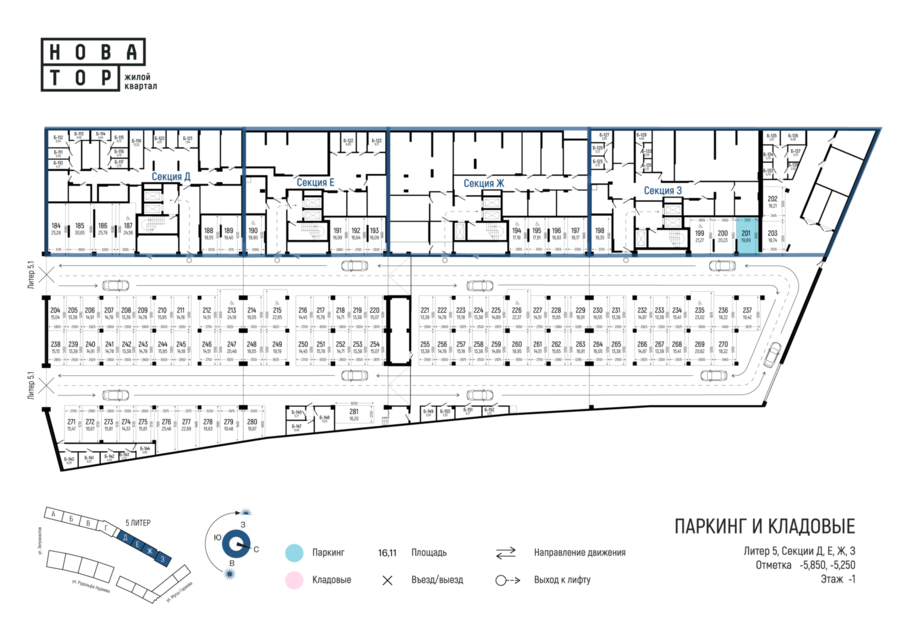 Литер 5. Паркинг, Секция А,Б,В,Г