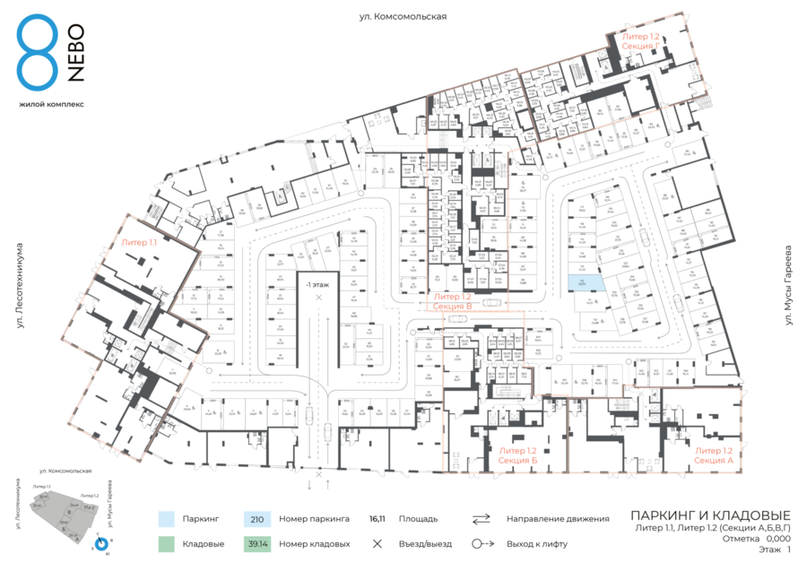 Литер 4.1 и 4.2 Паркинг, Секция А,Б,В,Г,Д,Е,Ж,З
