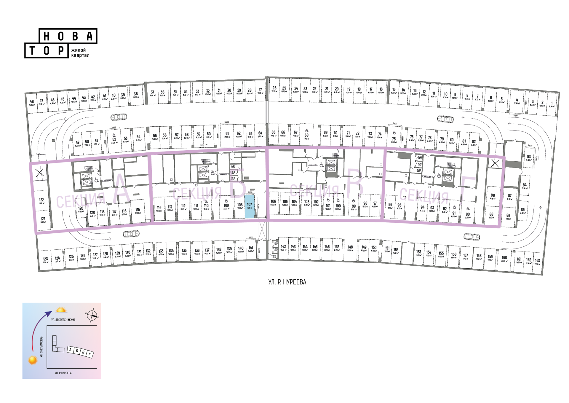 ЖК Новатор, Литер 5. Паркинг, Секция А,Б,В,Г