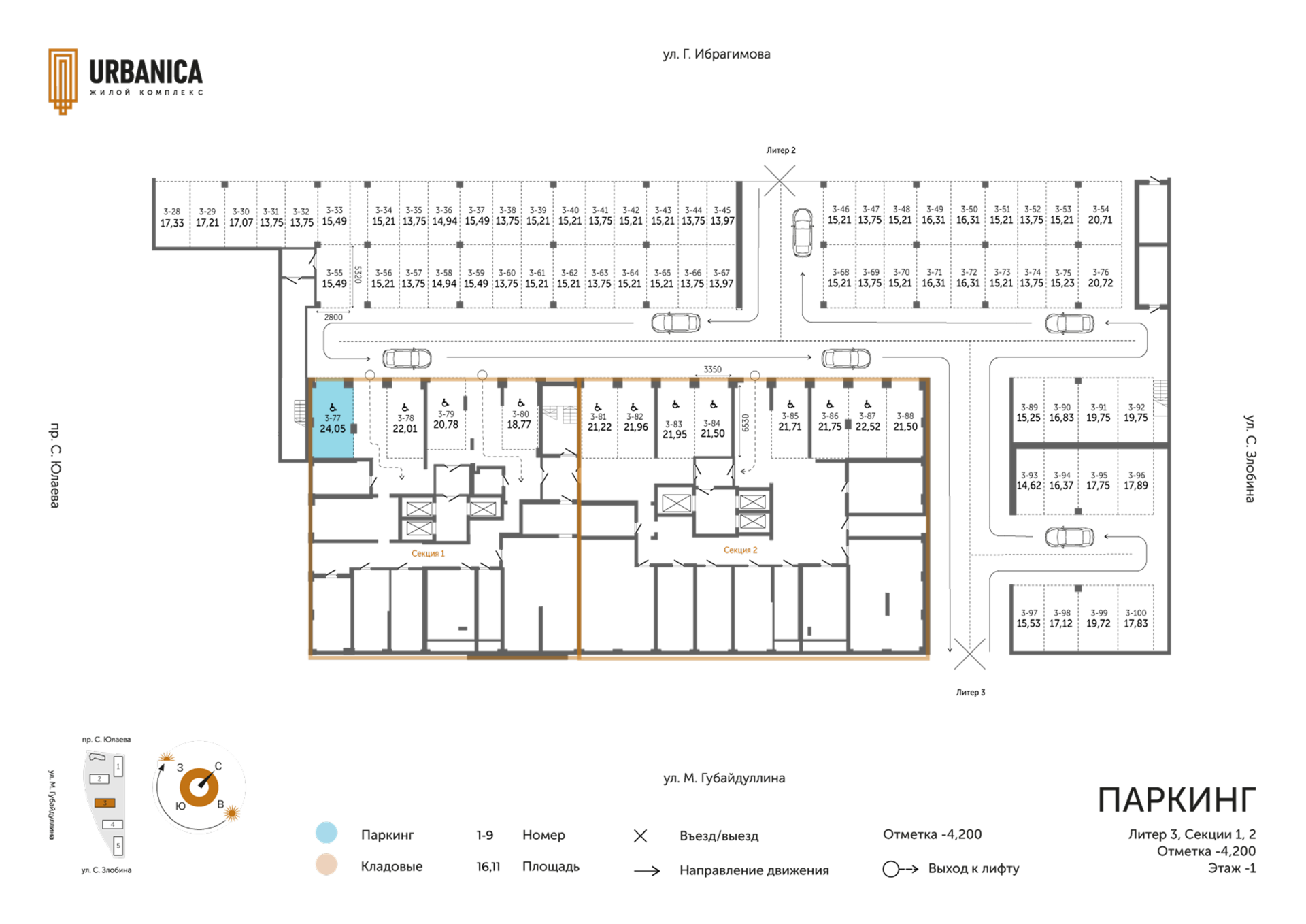 Литер 5. Паркинг, Секция А,Б,В,Г