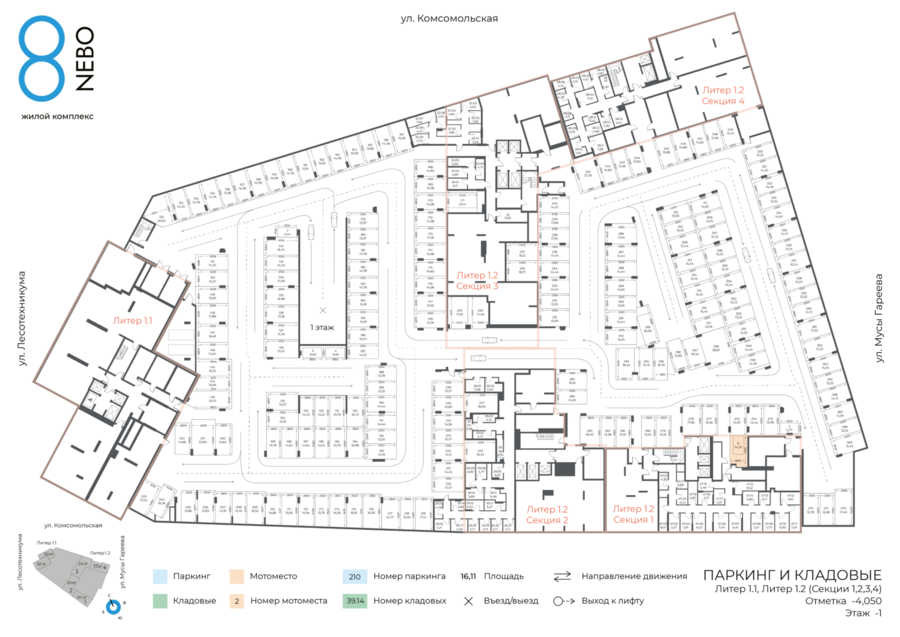 ЖК Новатор, Литер 5. Паркинг, Секция А,Б,В,Г