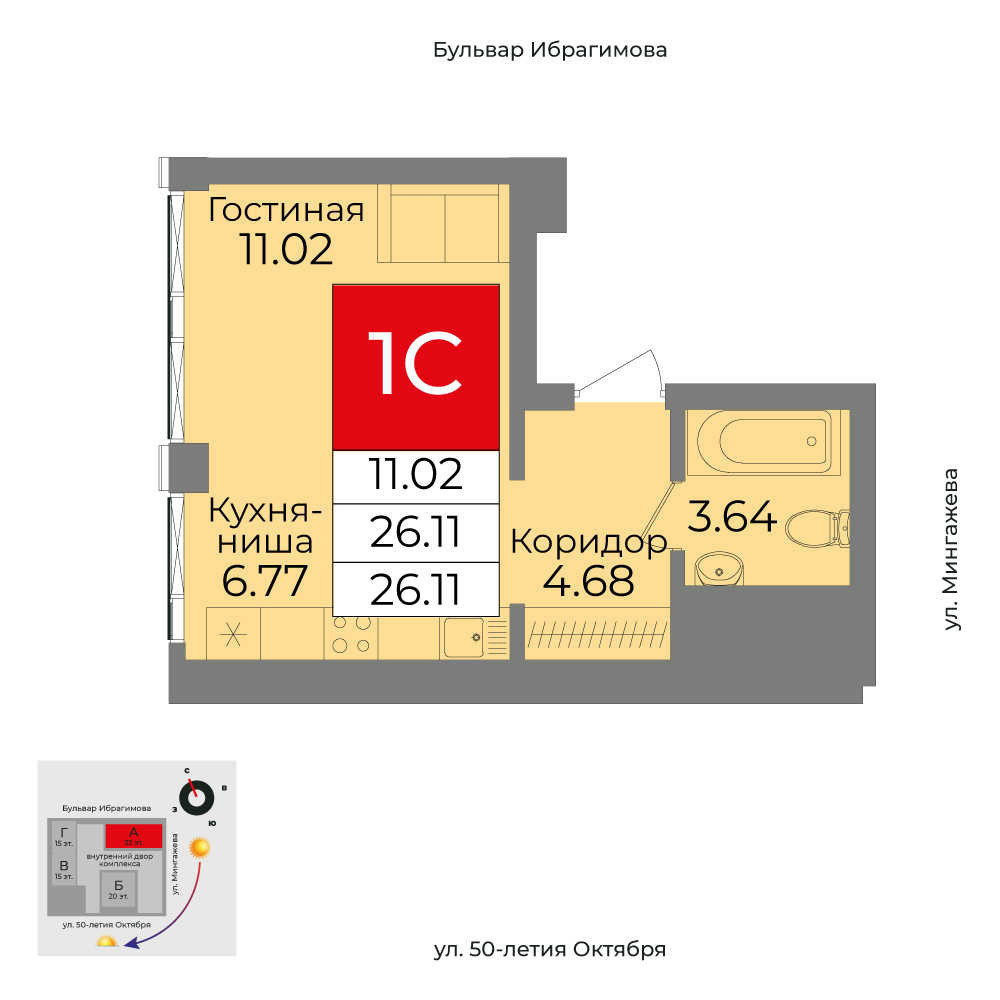 26.11 м²