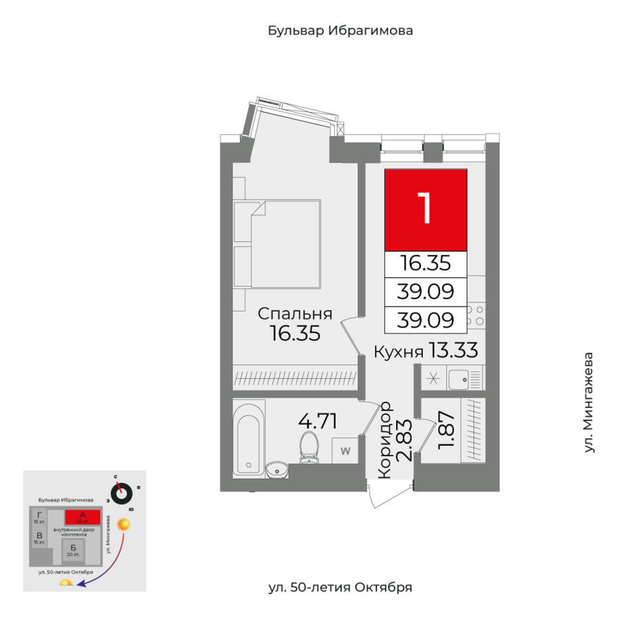 39.09 м²
