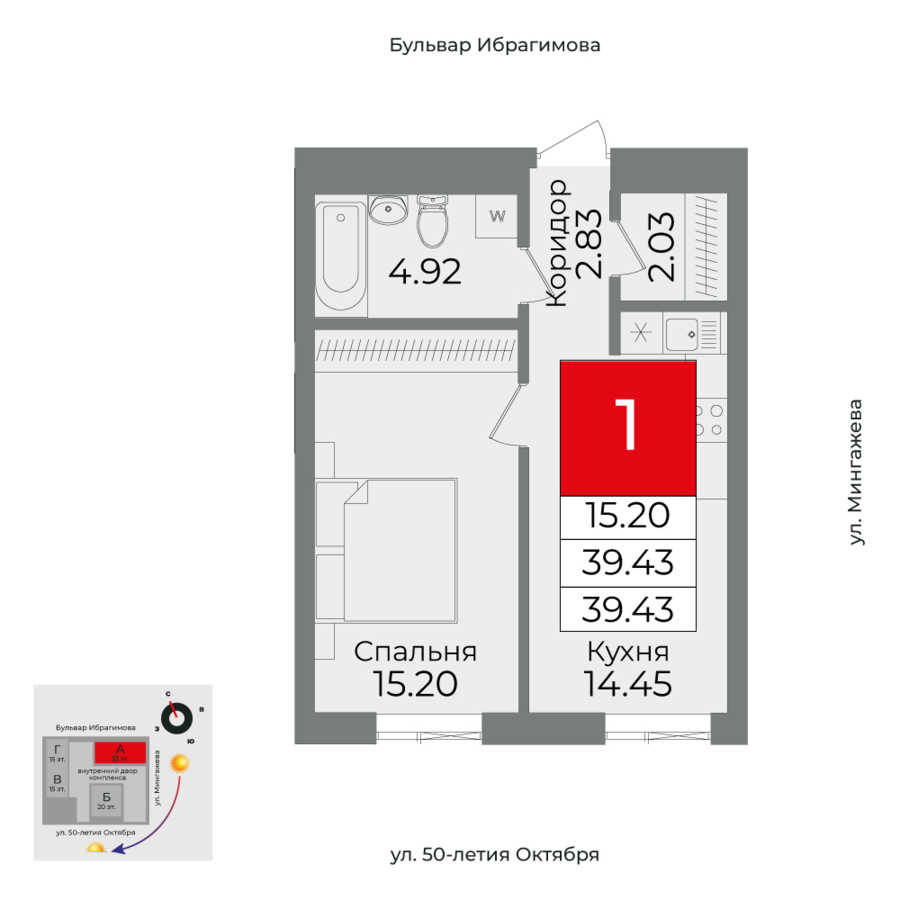 Купить однокомнатную квартиру 39.43м², №414 в Grand&Grand г. Уфа