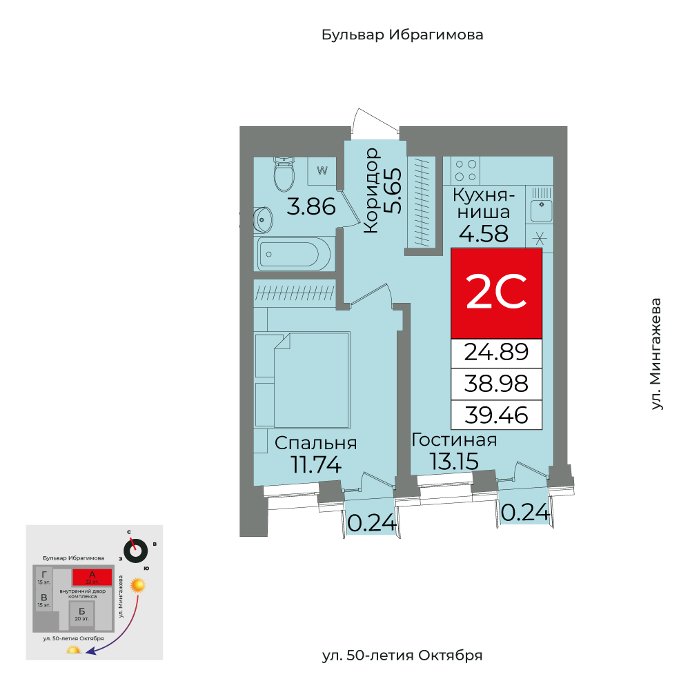 24.89 м²