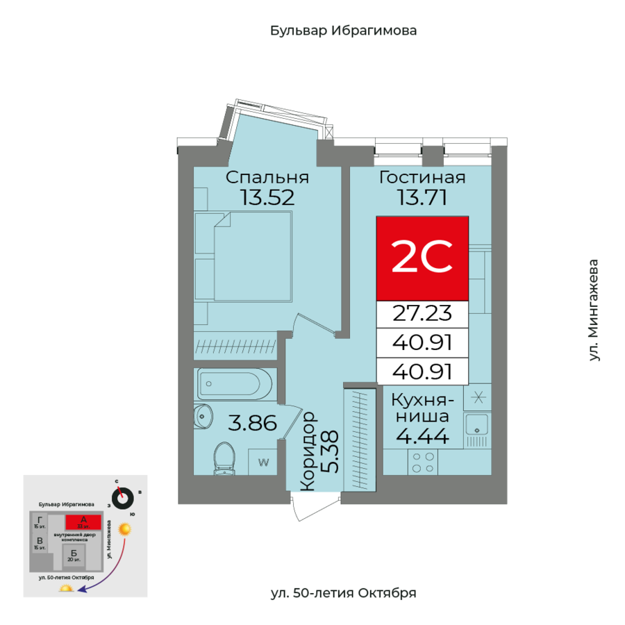 40.91 м²