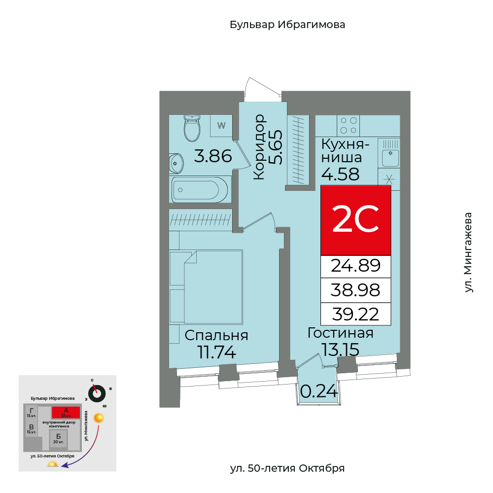 24.89 м²