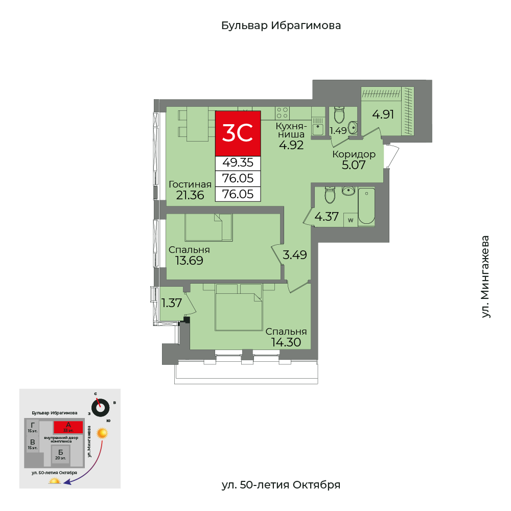 76.05 м²