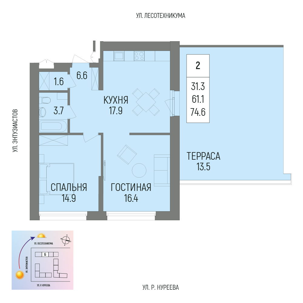 74.6 м²