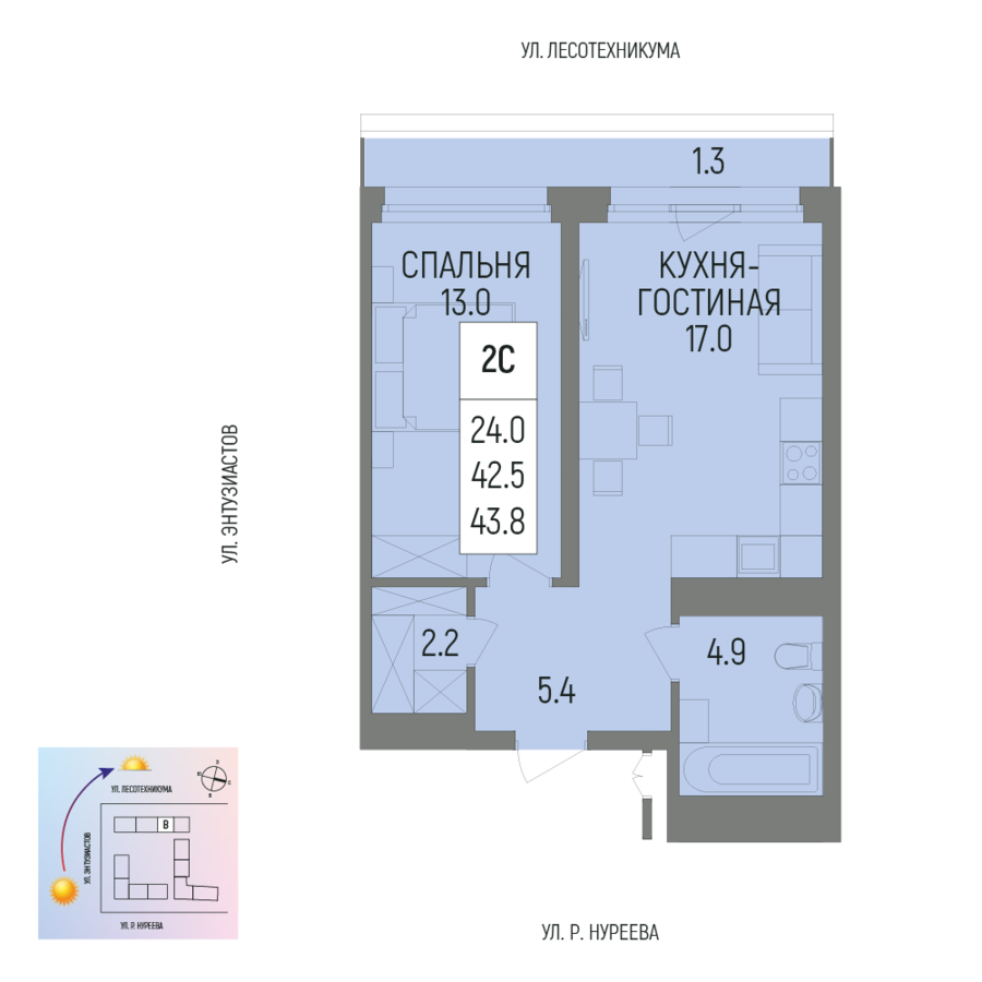 Купить двухкомнатную квартиру 43.8м², №263 в Новатор г. Уфа