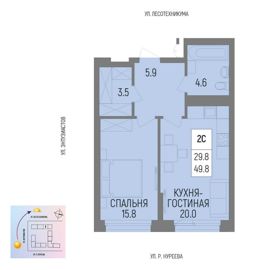 Купить двухкомнатную квартиру 49.8м², №274 в Новатор г. Уфа