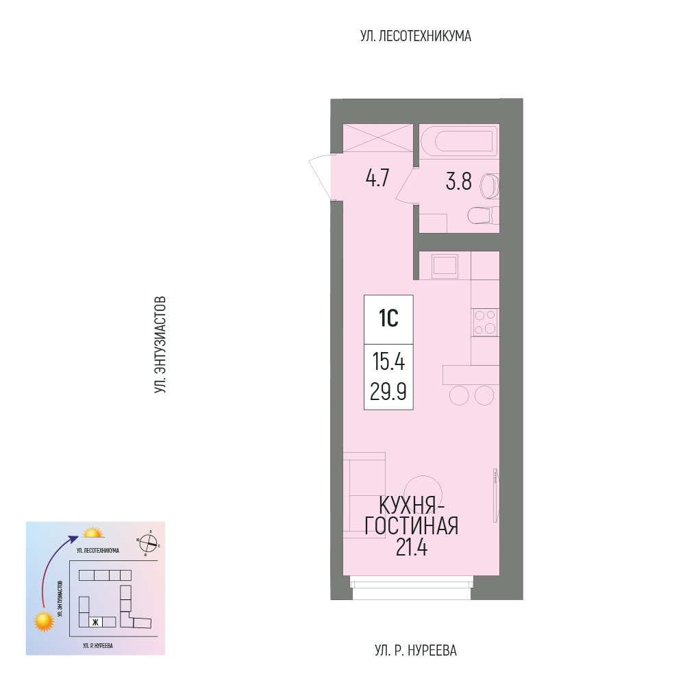 Купить однокомнатную квартиру 29.9м², №623 в Новатор г. Уфа