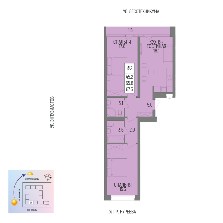 67.3 м²