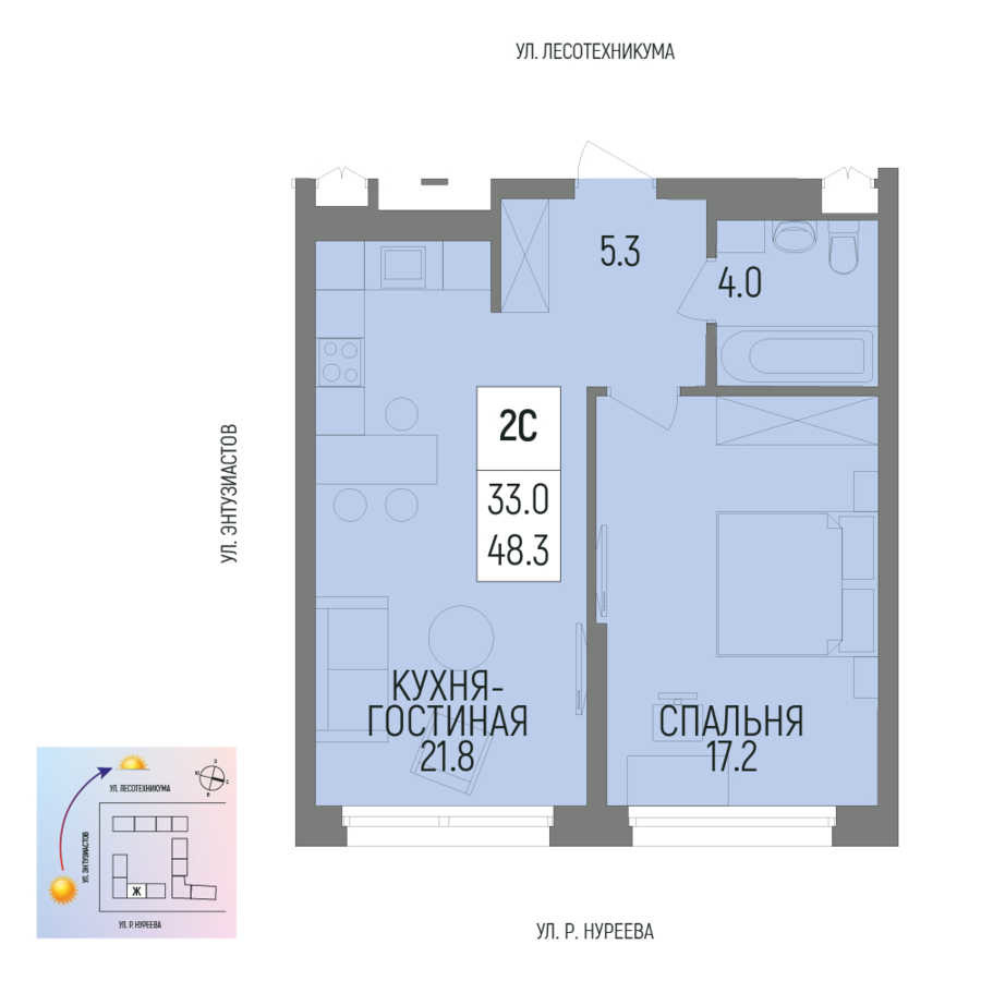 Купить двухкомнатную квартиру 48.3м², №642 в Новатор г. Уфа