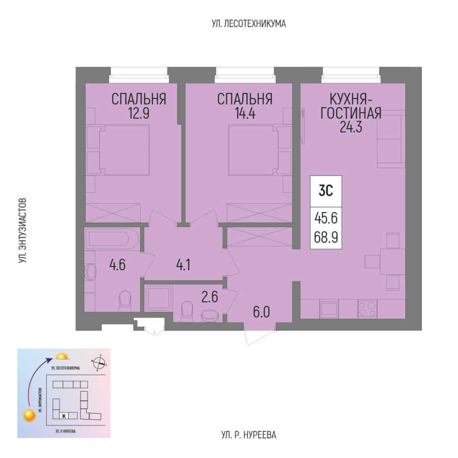 68.9 м²