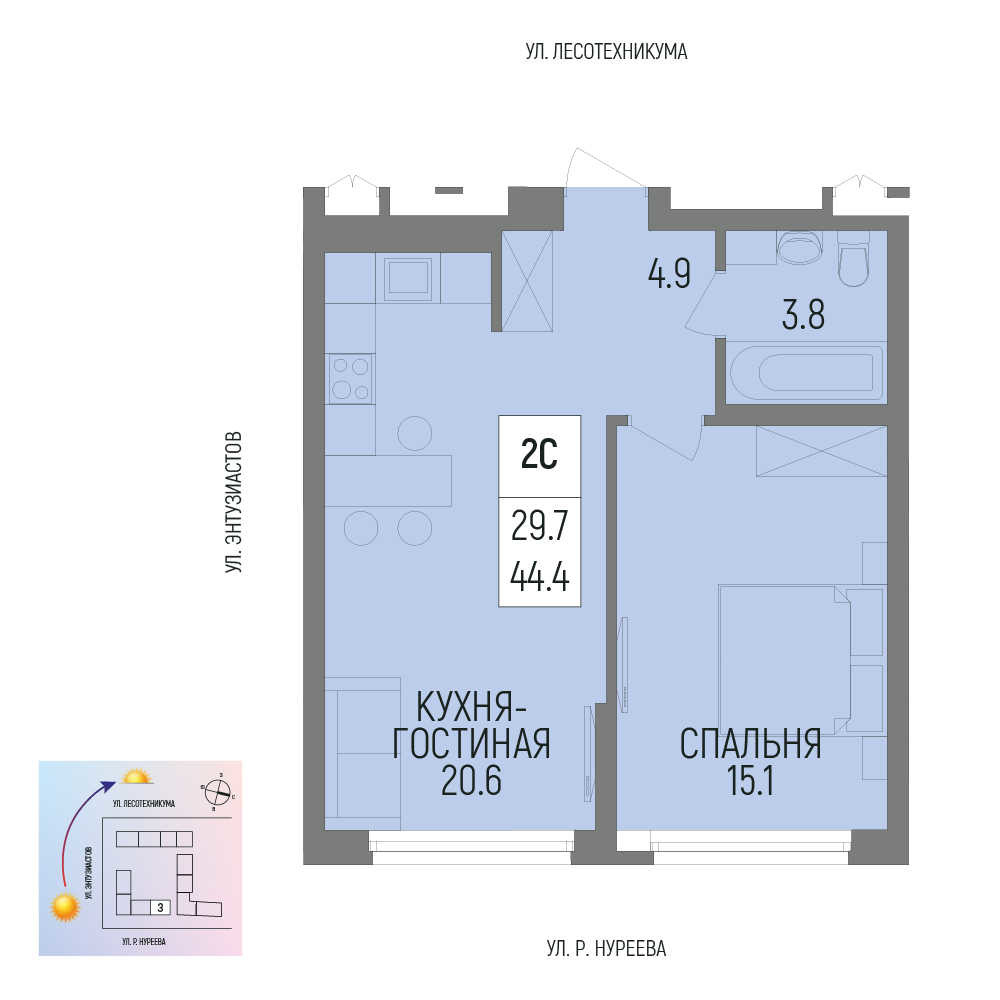 44.4 м²
