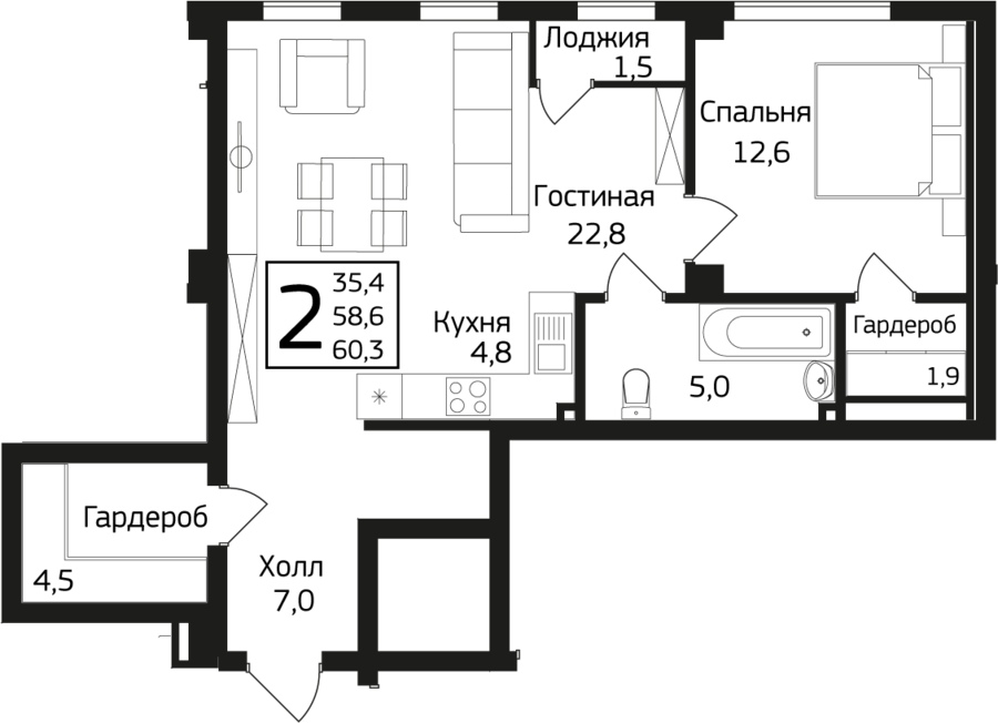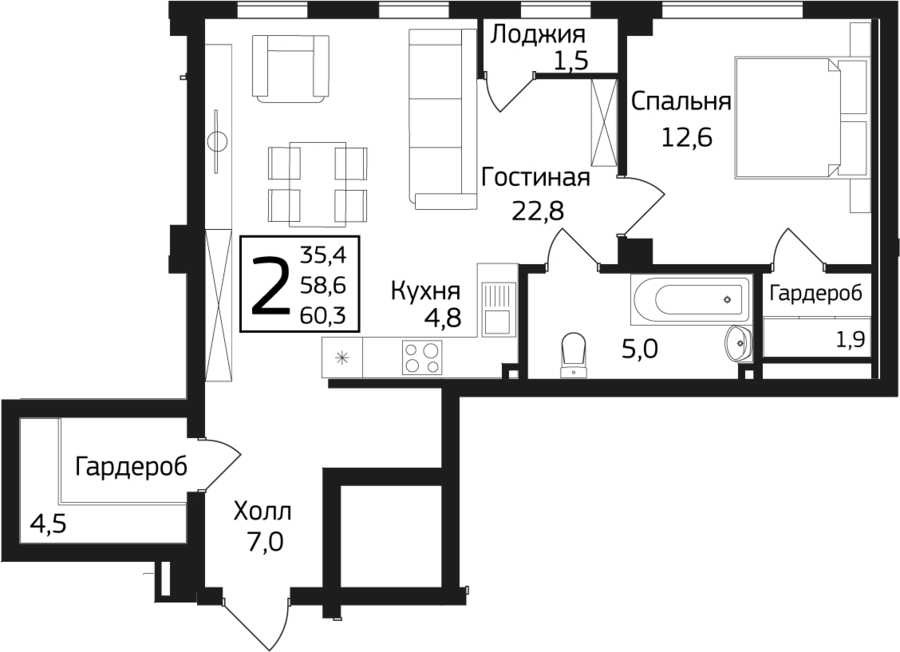 59.9 м²