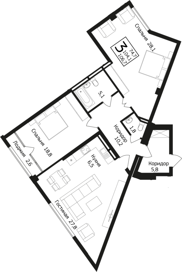 106.7 м²