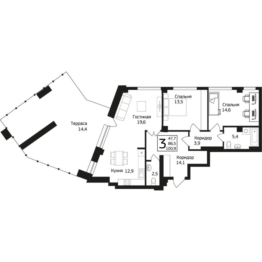 100.9 м²