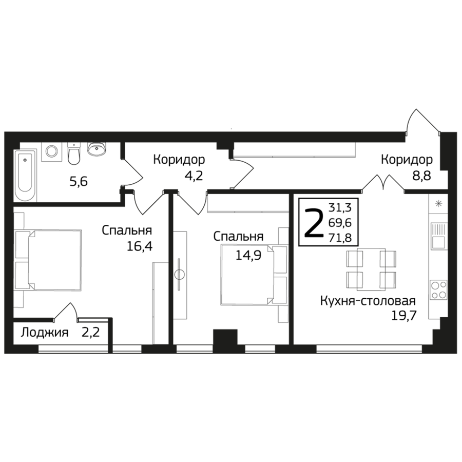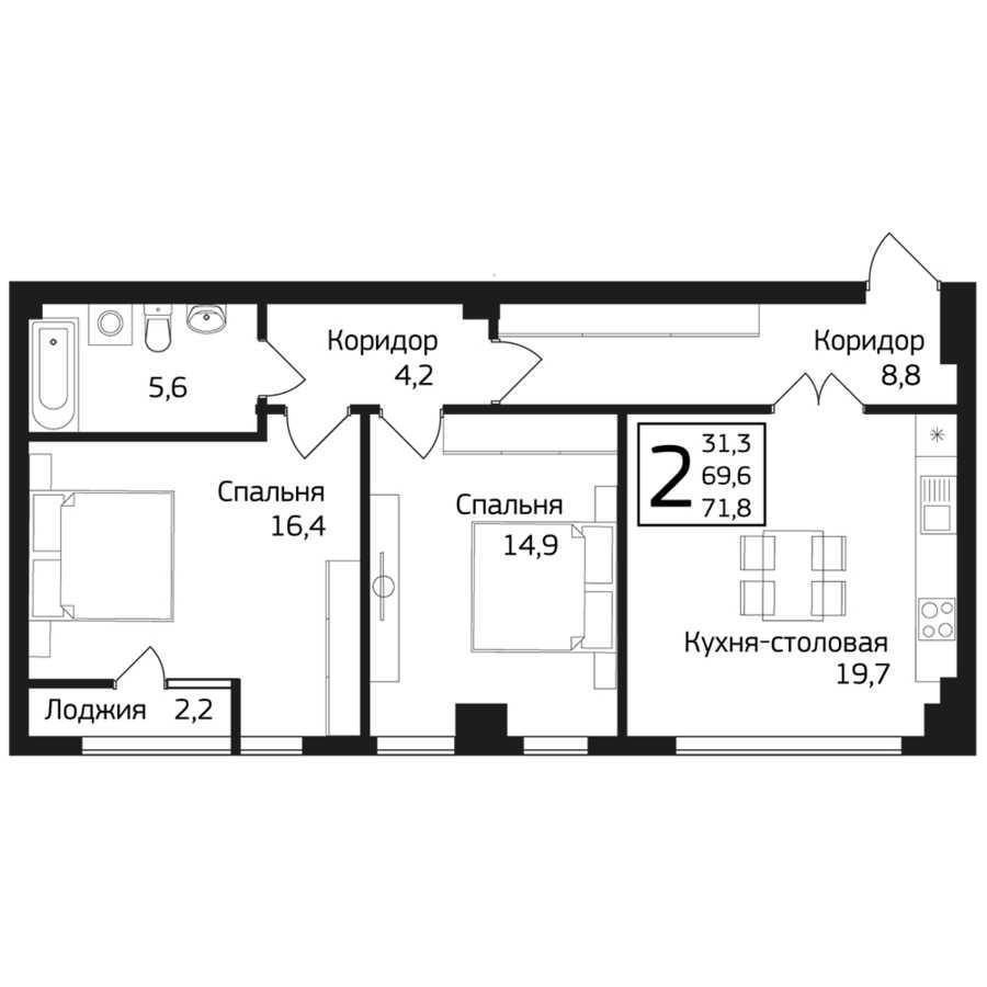 Купить двухкомнатную квартиру 71.8м², №42 в Клубный дом «Соты» г. Уфа