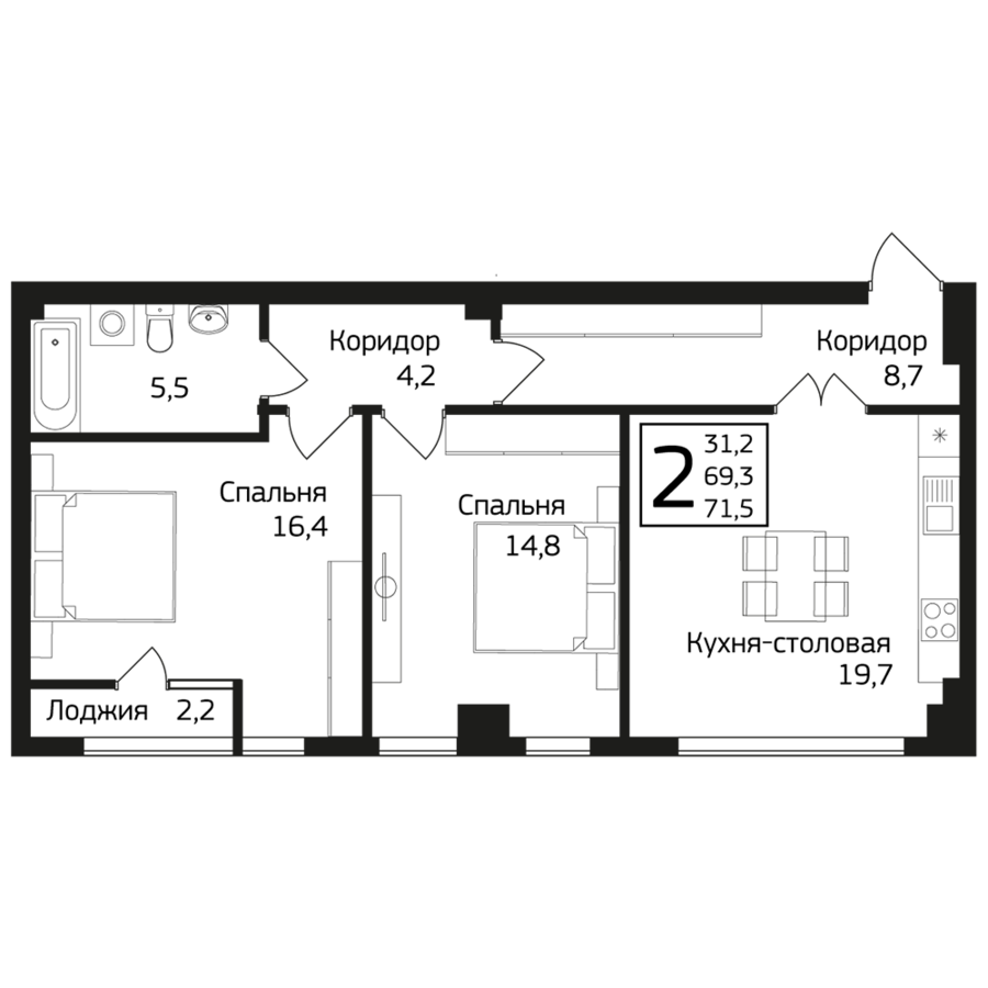 71.5 м²