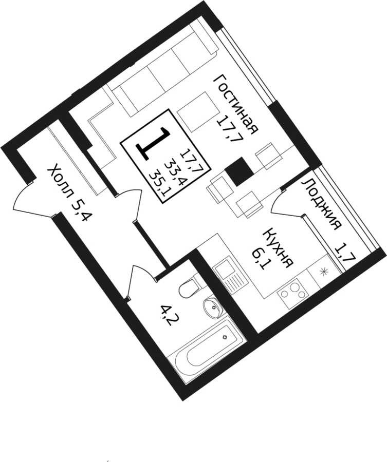 Купить однокомнатную квартиру 35.1м², №84 в Клубный дом «Соты» г. Уфа