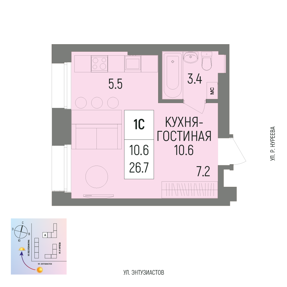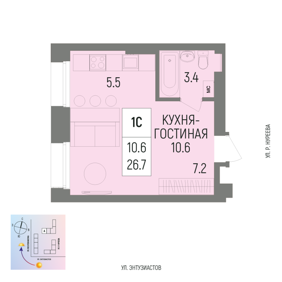 Купить однокомнатную квартиру 26.7м², №70 в Новатор г. Уфа