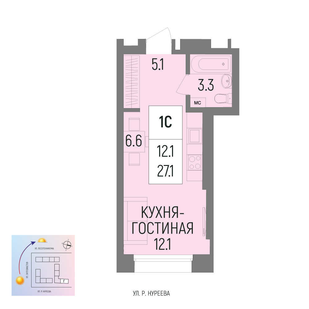 Купить однокомнатную квартиру 27.1м², №357 в Новатор г. Уфа