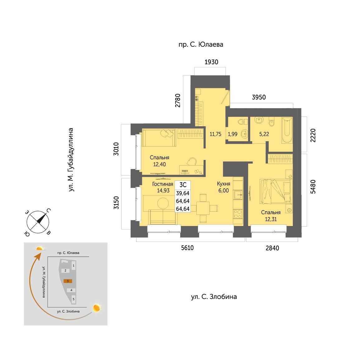 39.64 м²