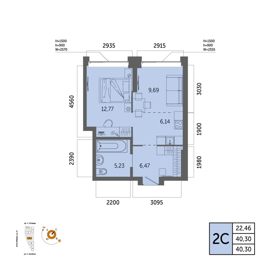 22.46 м²