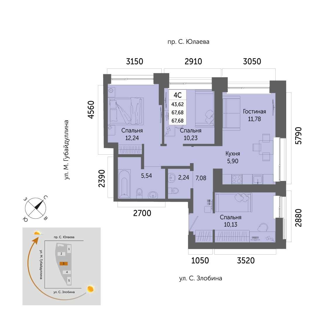67.68 м²
