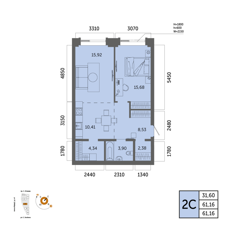 61.16 м²