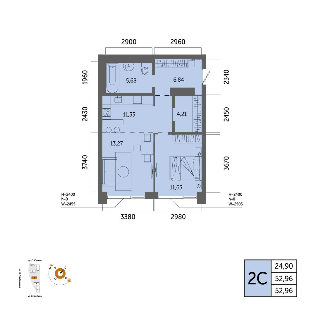 52.96 м²