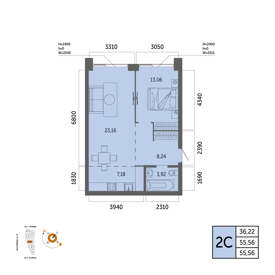 55.56 м²