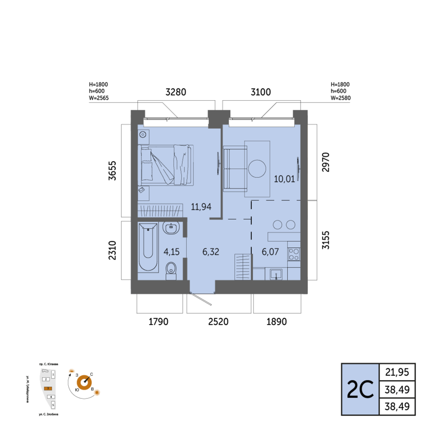 38.49 м²