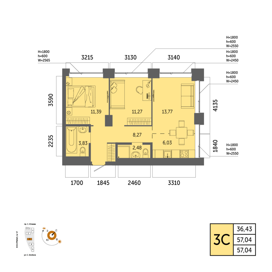 57.04 м²