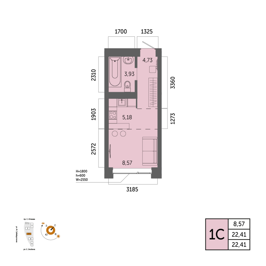 22.41 м²