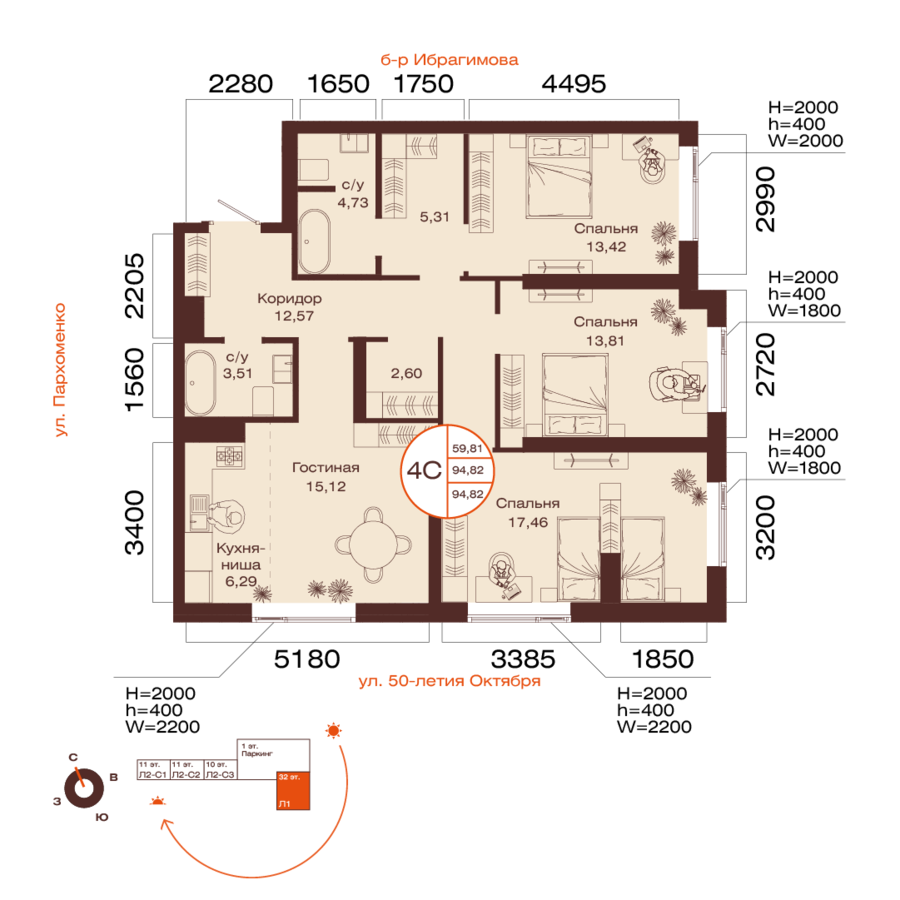 94.82 м²