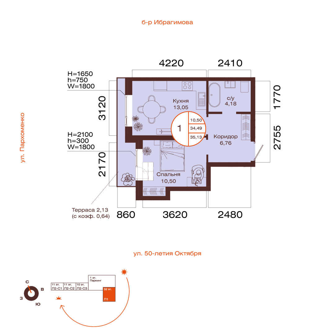 35.13 м²