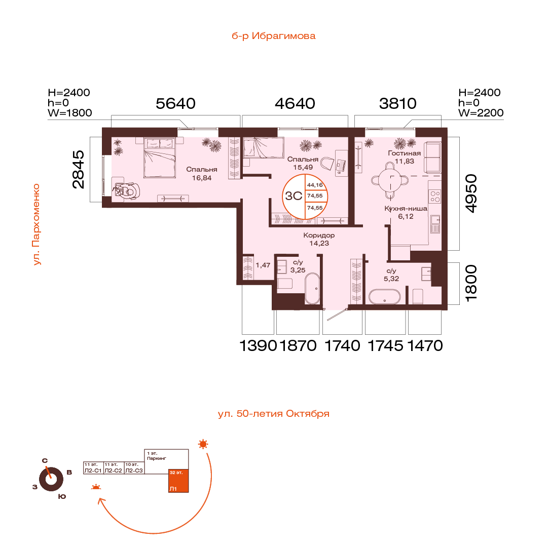 74.55 м²