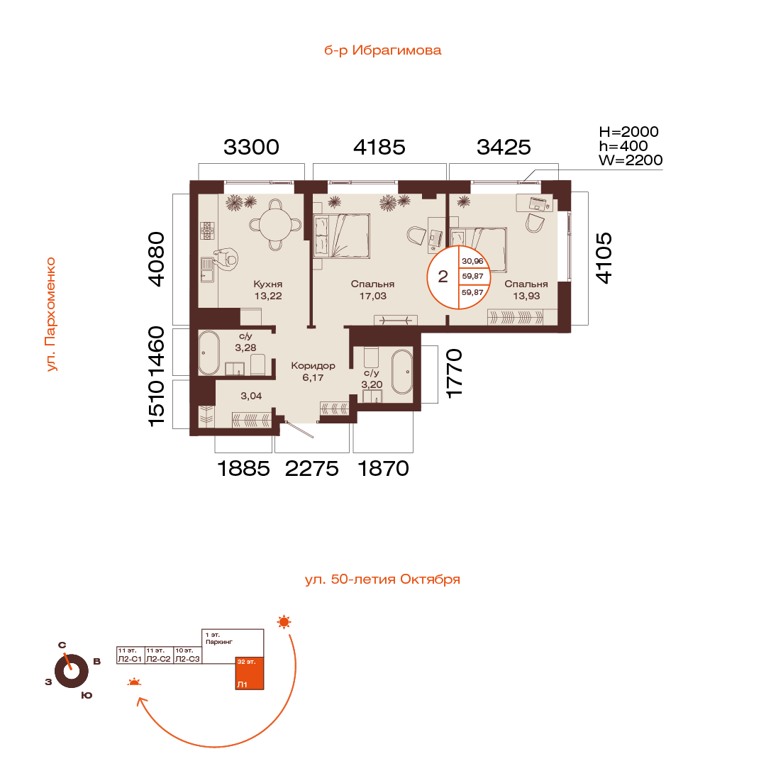 59.87 м²