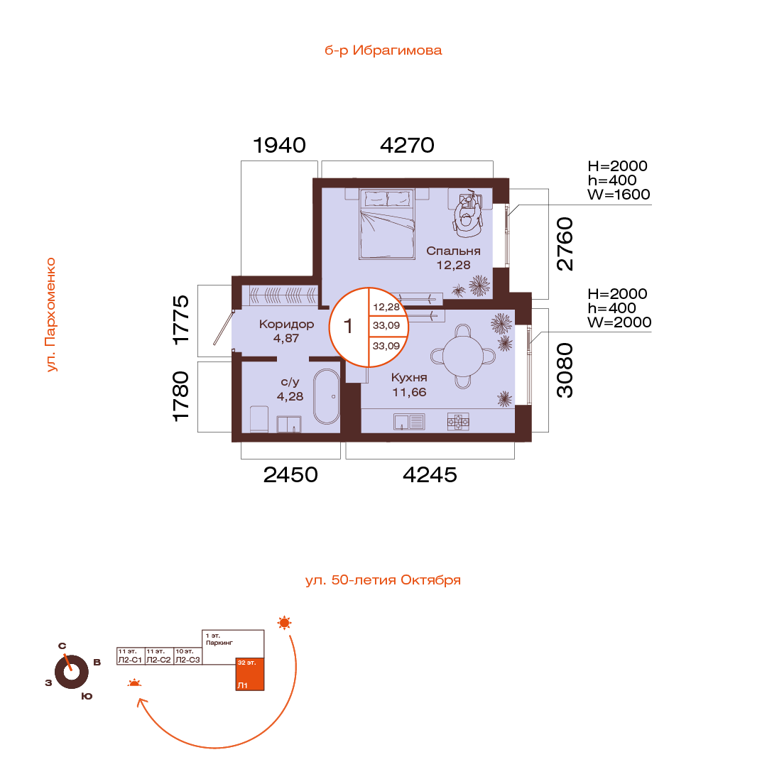 33.09 м²