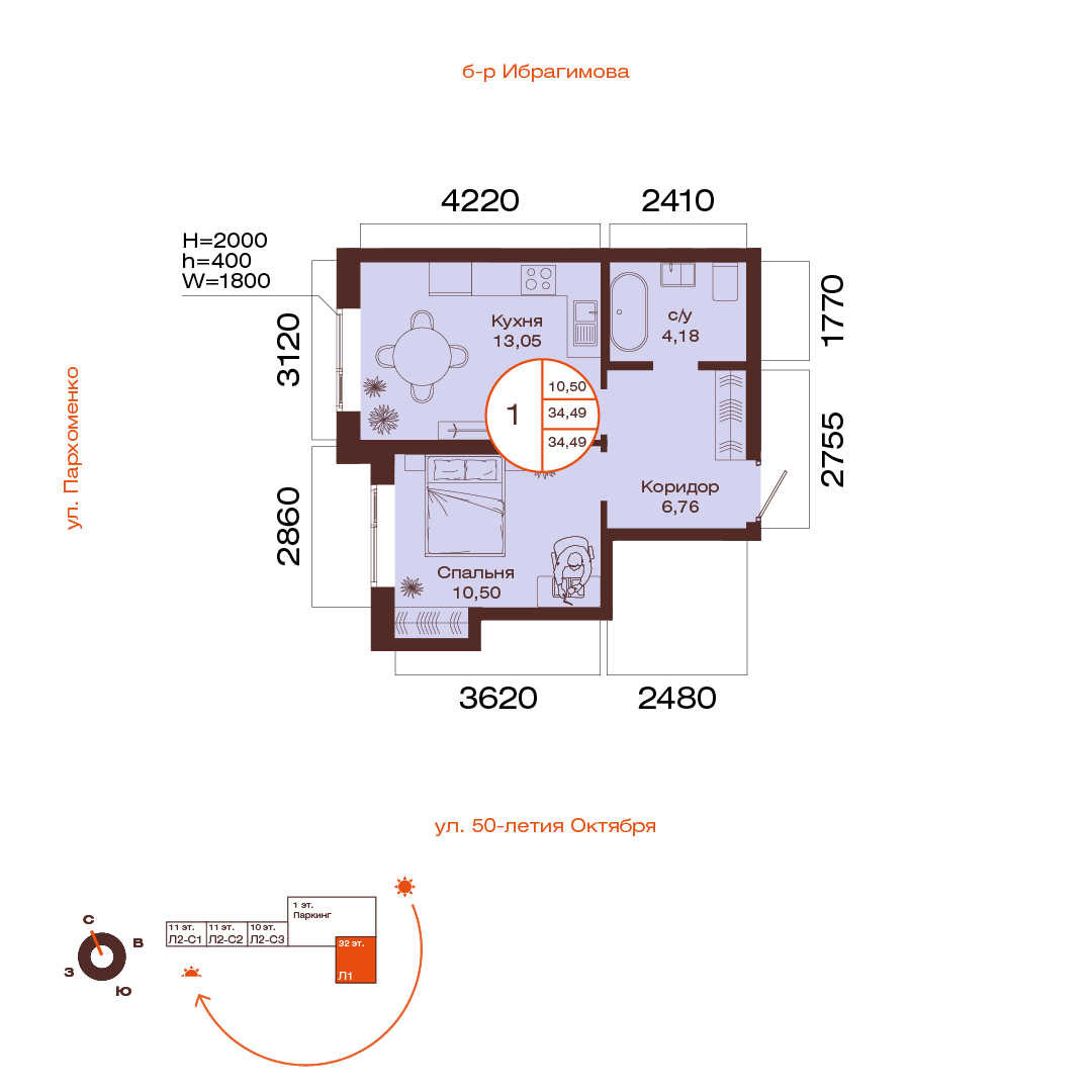 34.49 м²