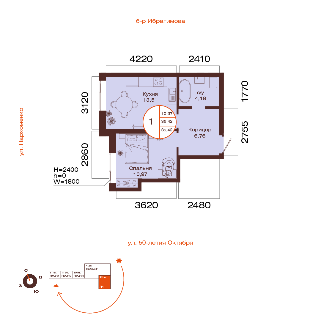 35.42 м²