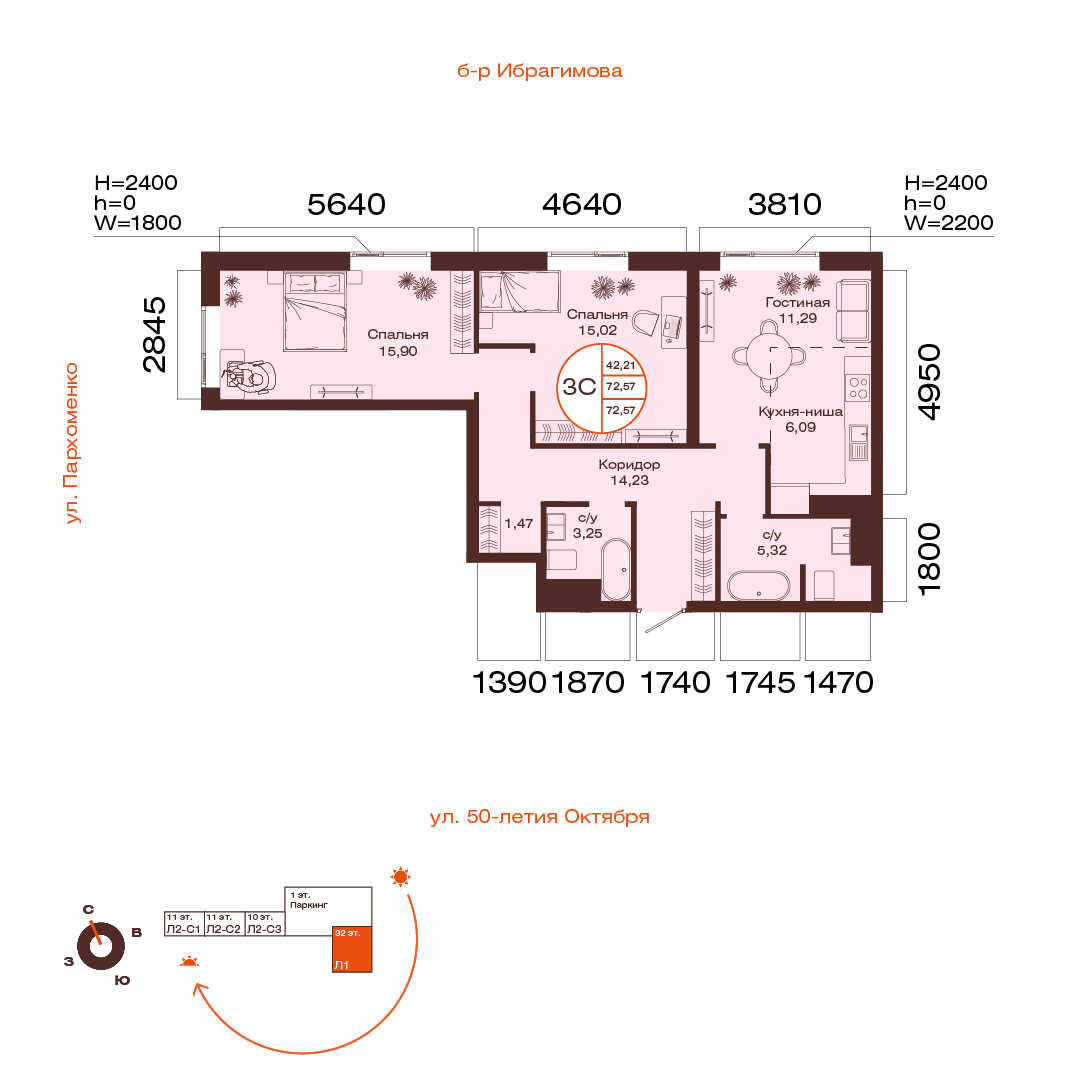 72.57 м²