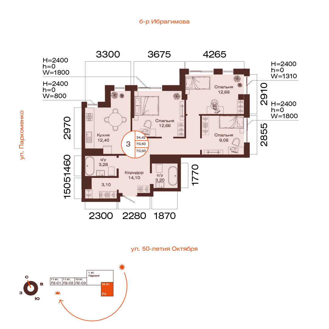 70.5 м²