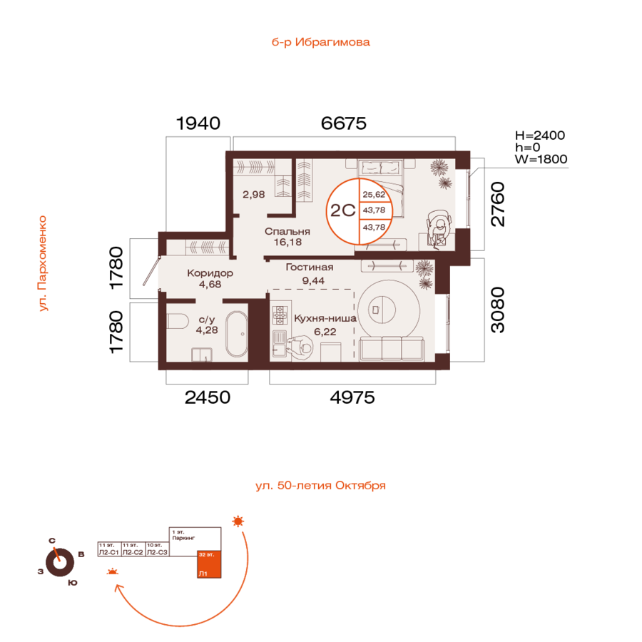 43.78 м²